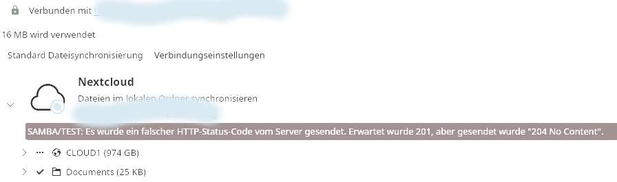 In Debian 13 with Nextcloud Desktop 3.16.7, you can rename a folder from “TEST” to “Test” in the /SAMBA folder, but an error message appears in the client:
