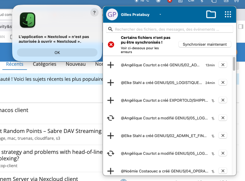 Bug with access on local files via nexcloud apps: it does not work. and also problème with files synchronisation⌠All the access are opened for nextcloud in safety setup (MAC)