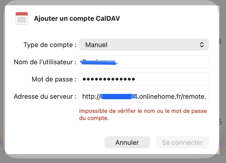 -The adress suggested ? I’ve also tried with http:/XXXXXX.onlinehome.fr/remote.php/dav/principals/users/My_user_name