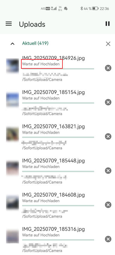 Mitlerweile habe ich den Android Client 3.31.0 installiert aber jetzt steht dort schon wieder “Warte auf Hochladen” und es passiert nichts.