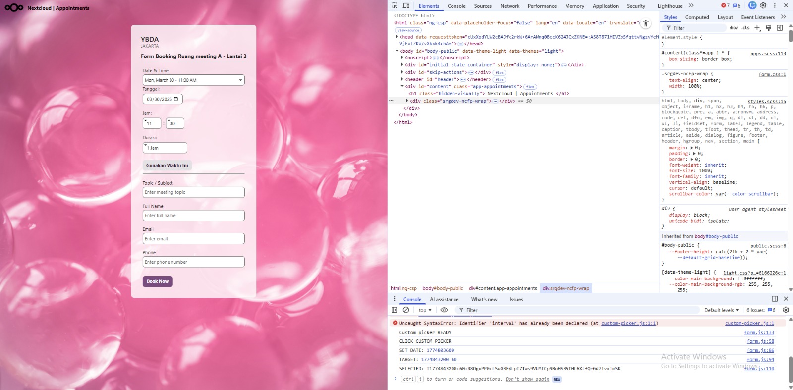 I tried to improve it by replacing the slot selection with a custom time picker, where users select: