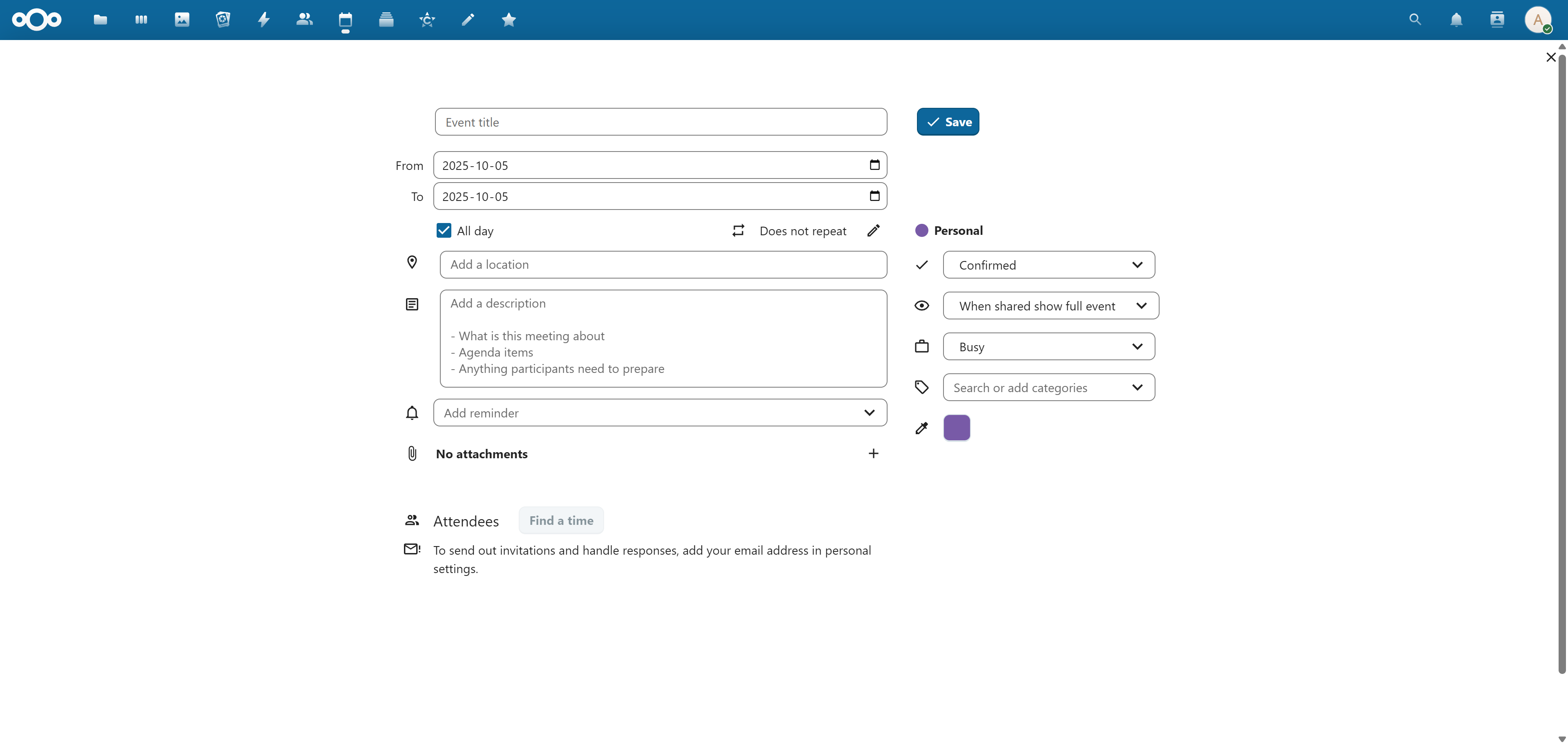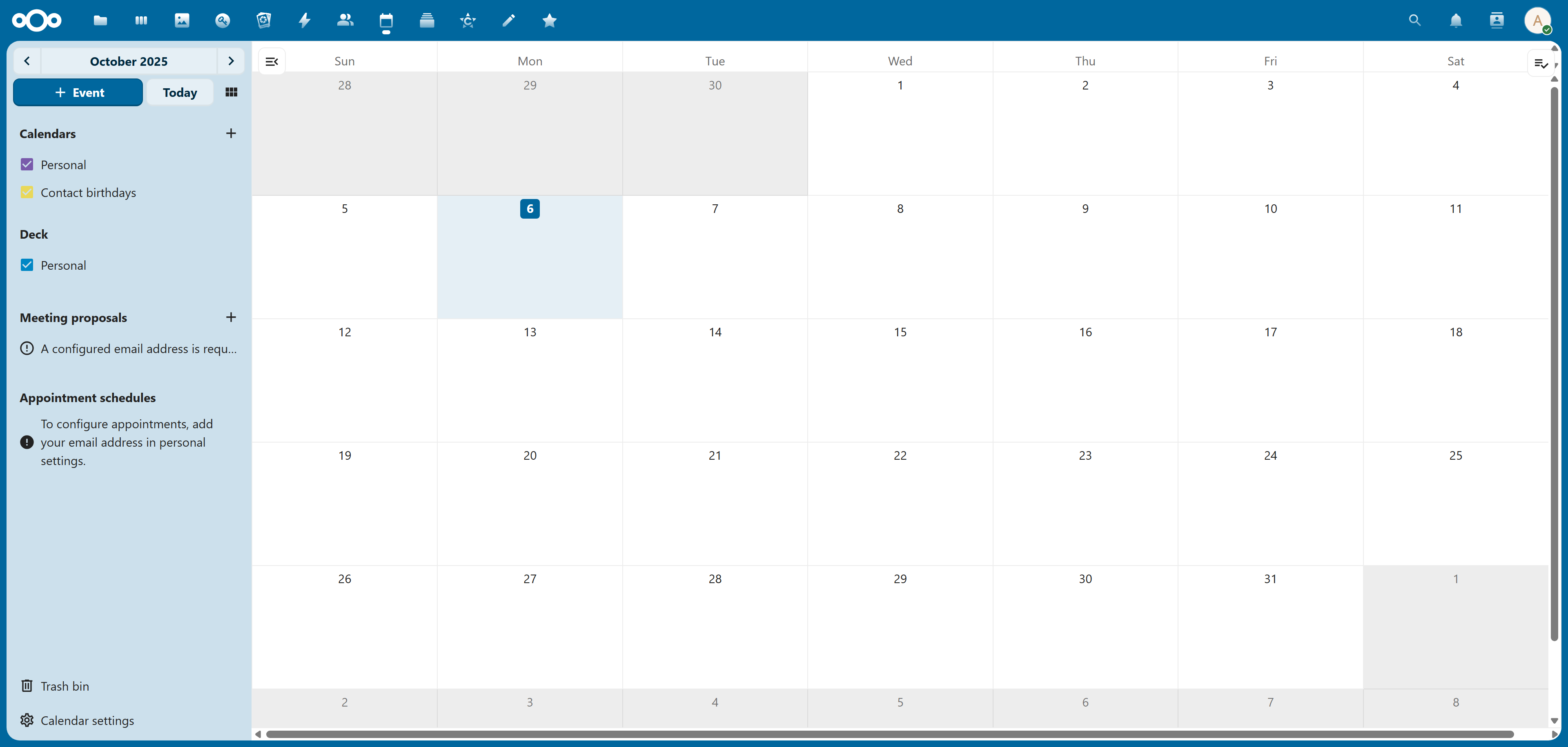 Screenshot of NC 32 with Calender 6.0.0 (including the bug with horizontal scrolling ;-)):