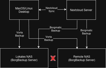 ABER: @adelaar hat schon darauf hingewiesen. Nextcloud ist gut, um Dateien zu synchronisieren (und ist damit auch ein gewisses Backup) aber eben kein Ort, um dazu noch Grundbackups abzulegen. Wenn dann nämlich dein NAS oder wo auch immer dein Nextcloud liegt unwiderbringlich ausfällt, dann sind beide Backups auf einmal futsch. Wichtig ist eine Backupstrategie, die unterschiedliche und voneinander unabhängige Medien nutzt (externe Platte + NAS + verschlüsselt in der Cloud, bspw.).