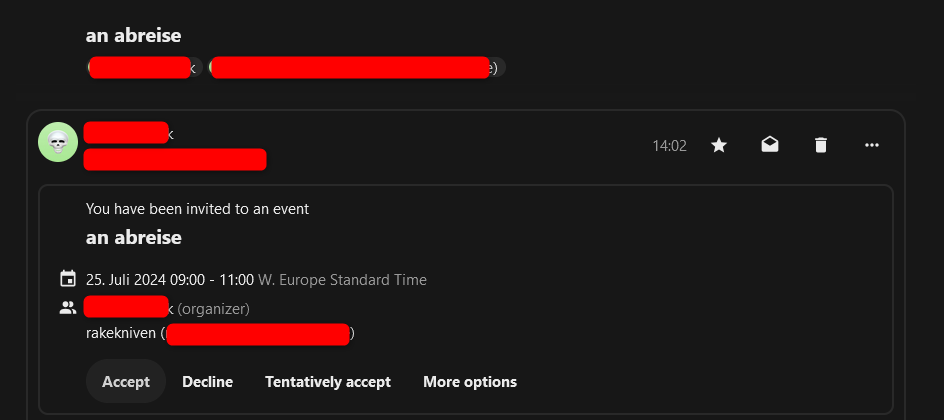 I already tried snappy mail client as it was rumored to have a better integration for outlook invites but that doesnt work for me either.
