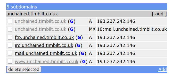 However if I go to unchained.timbilt.co.uk I just get a FreeDNS holder page. It looks in FreeDNS that this is set correctly: