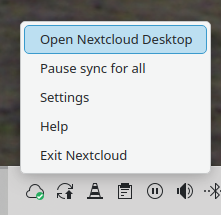If I click on Open Nextcloud Desktop nothing happens. But the settings are available: