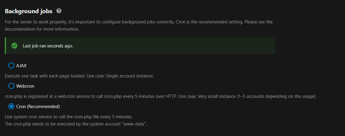 and now it appears that its returning a 200 but the nextcloud > admin panel > basic settings > background jobs message is this one