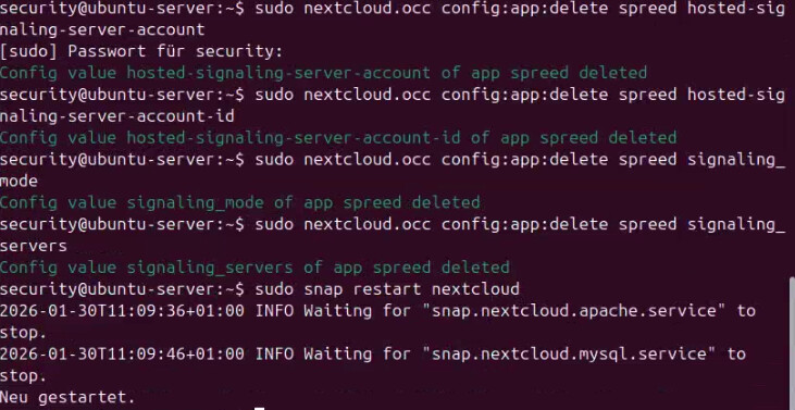 I tried out the hosted high-performance backend and no longer want to use it. According to Spreed.eu, it’s already been deleted. However, all the data is still displayed in my Nextcloud Snap instance. How can I delete it?