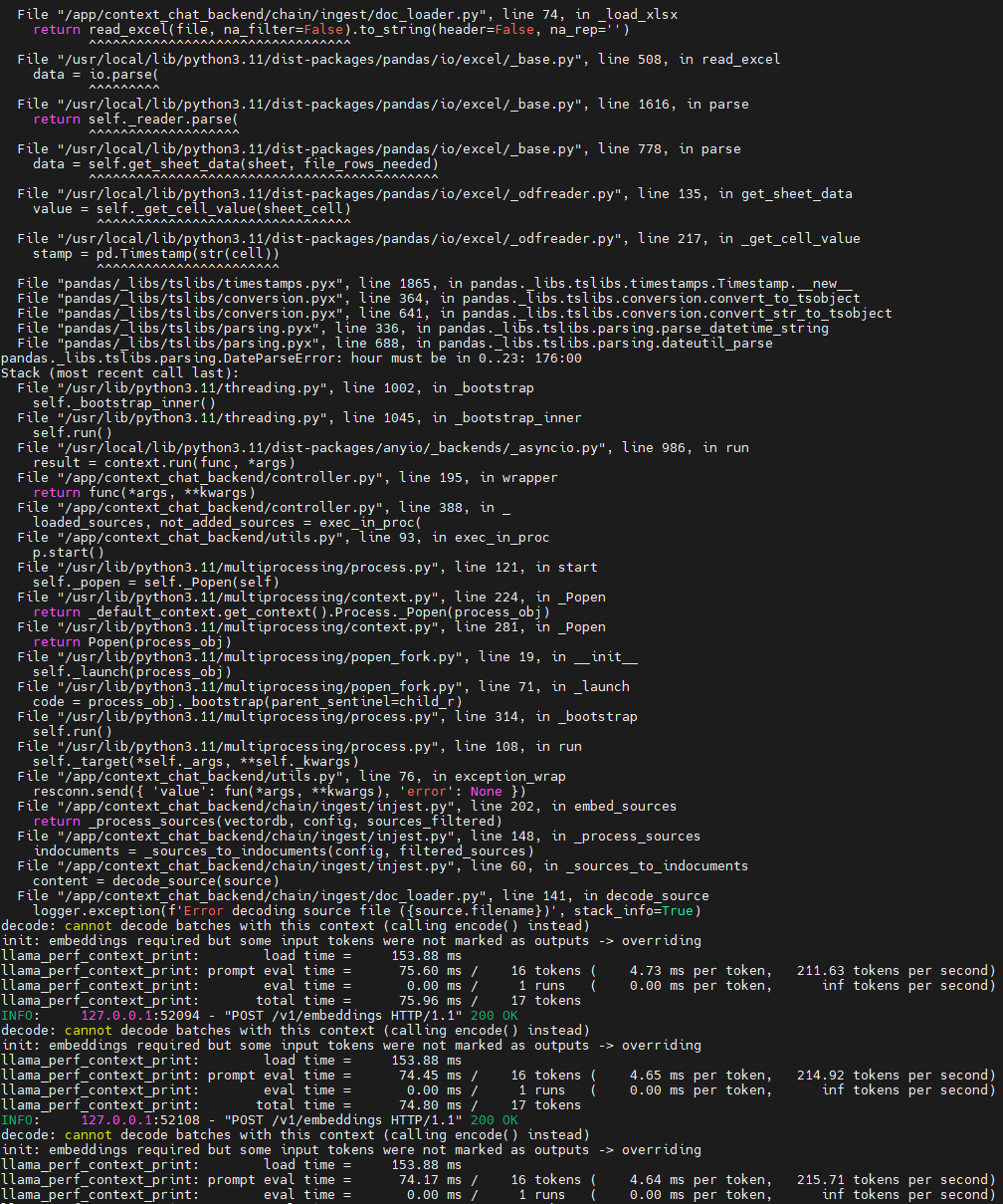 Error received from Context Chat Backend (ExApp) with status code 503: unknown error