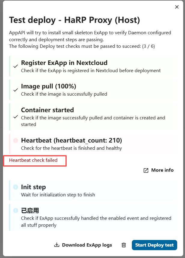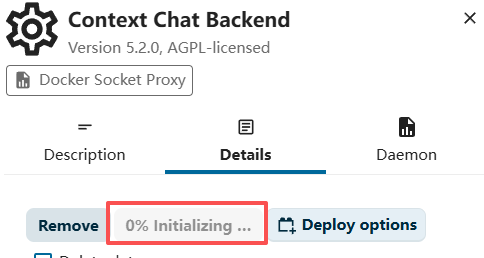 I want enable nextcloud AI assistant for context_chat, and I was read the offical method like: https://docs.nextcloud.com/server/latest/admin_manual/ai/app_context_chat.html , everything looks good,but when I check the status of “Context chat Backend“ in Active apps and it show me 0% initializing….