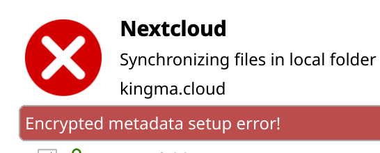 I encrypted a folder, removed the sync to setupægain on Fedora43. After entering the passphrase I see: