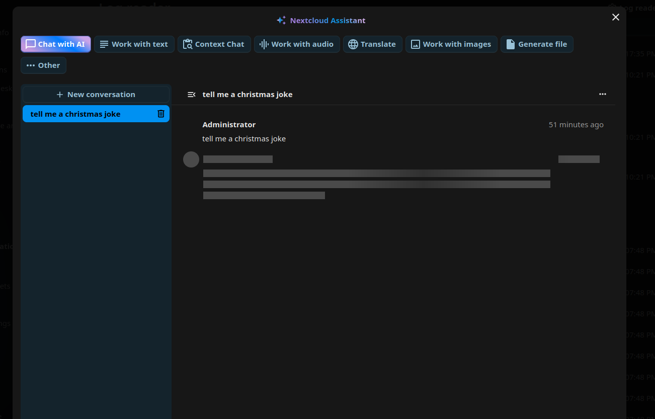 In the AIO interface, I have enabled the “Docker Socket Proxy” and I have also installed the “Nextcloud Assistant Context Chat” and the “Context Chat Backend”, both version 5.1.0