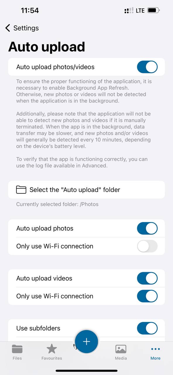 The auto-upload of photos and videos allows for custom file naming and folder sorting, a wifi-only upload option, HEIC support for iOS devices, and more.