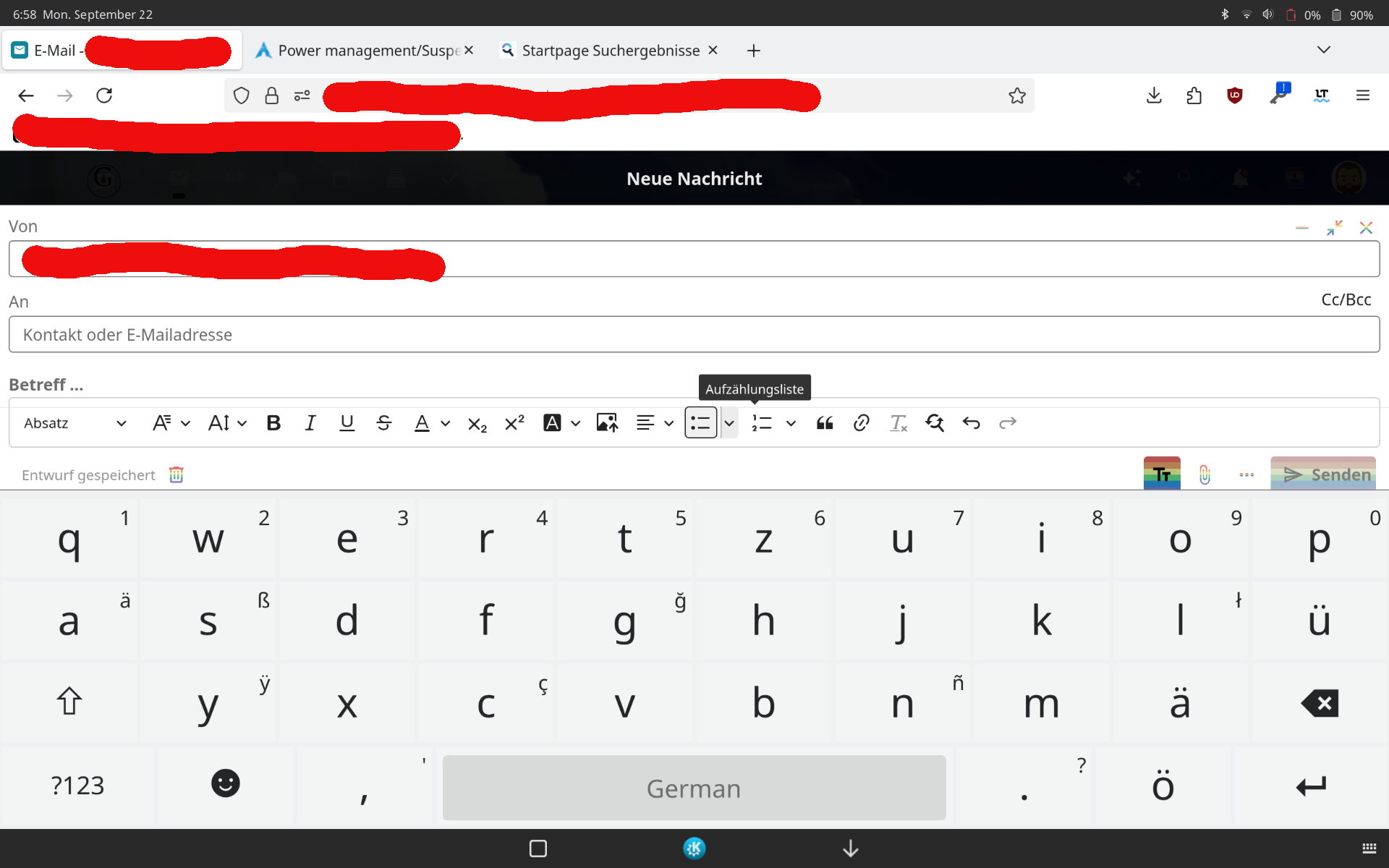 I am unable to compose an email on my tablet using the NC Mail app. When I open the on-screen keyboard, the editor view expands to full screen, and everything below the recipient address is compressed together and cannot be scrolled.