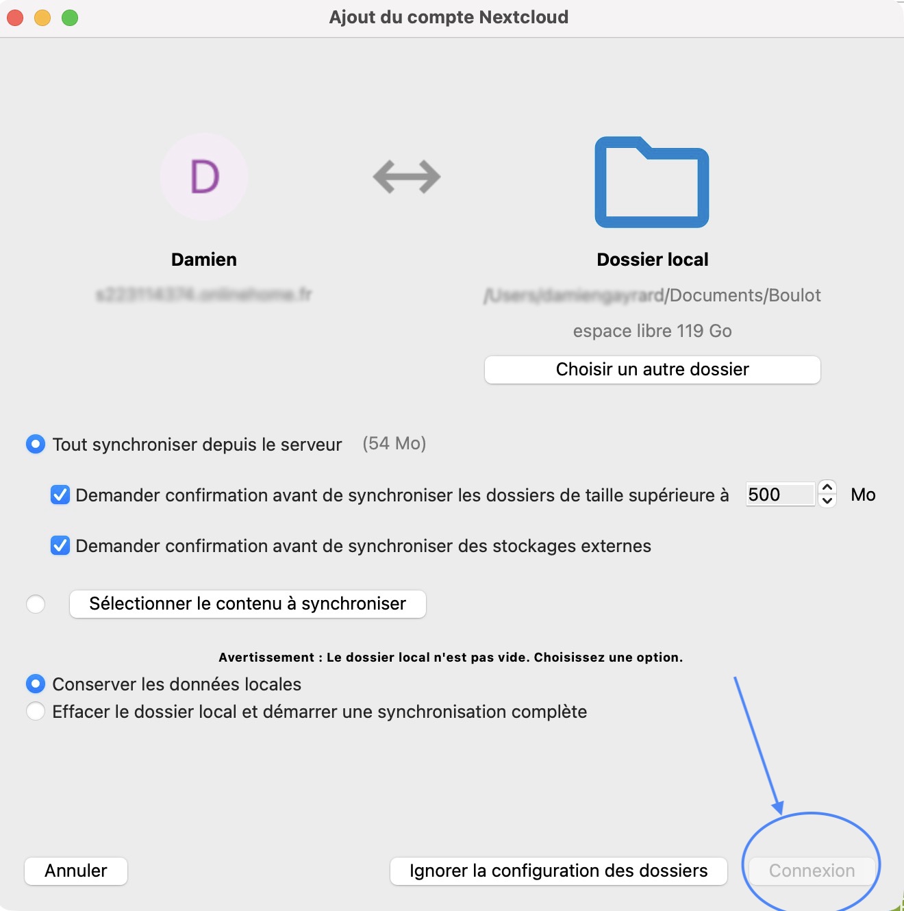 I can add, that it says “choose another location. Users/XXX/XXX is already used as a synchronisation folder.
