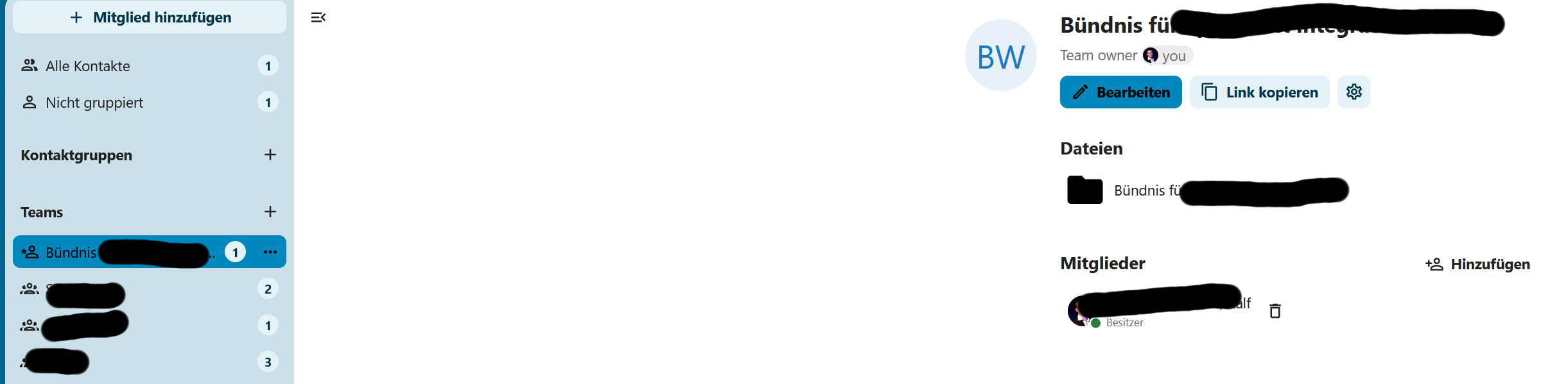 Ich bin Eigentümer eines Teams (kommunale Verwaltung, kein Admin-Zugriff und die zuständigen MA in der IT sind keine Hilfe - drum in den Screenshots die Schwärzungen).