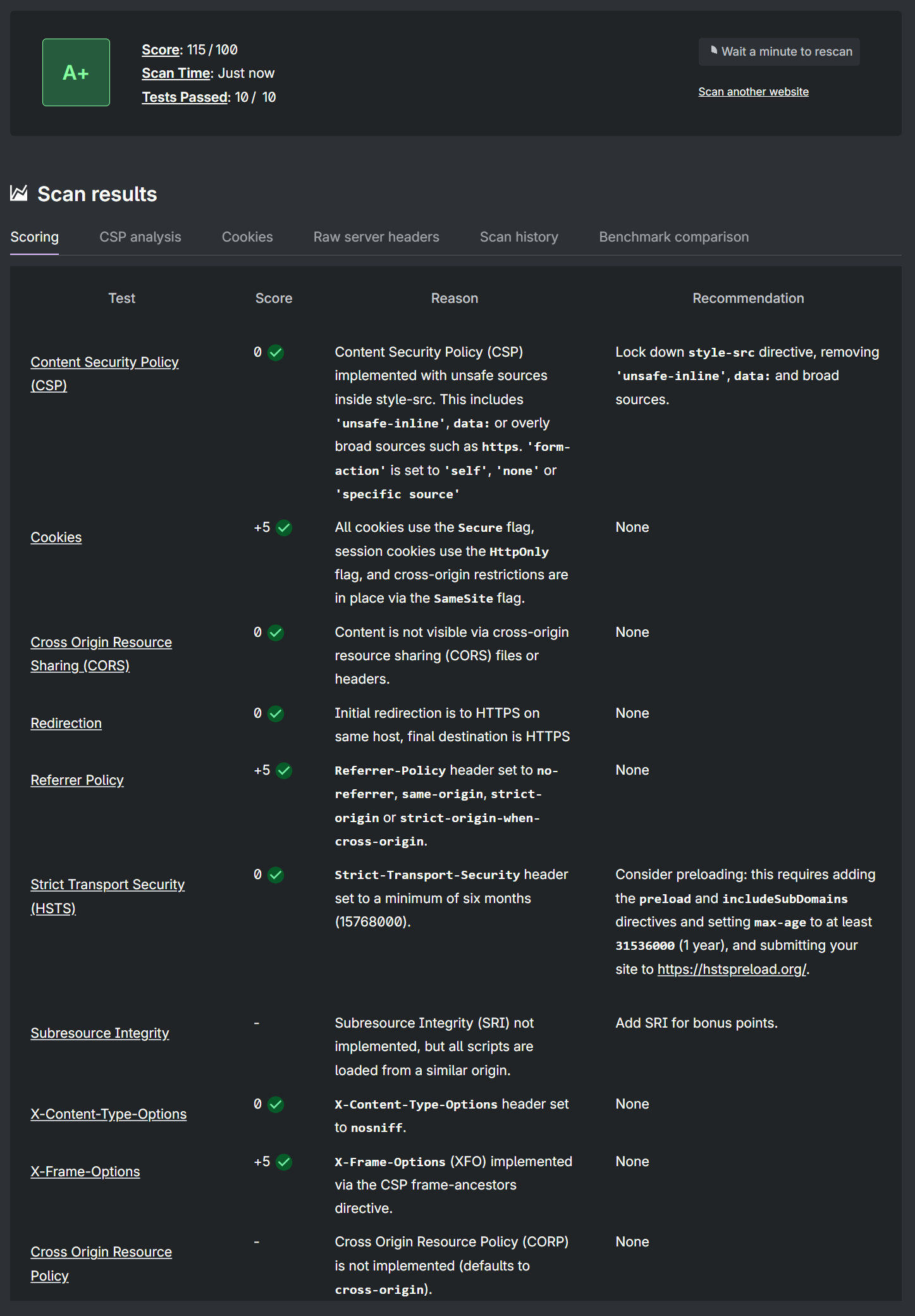 When applying the mozilla http observatory report on my nextcloud instance I get a D rating.