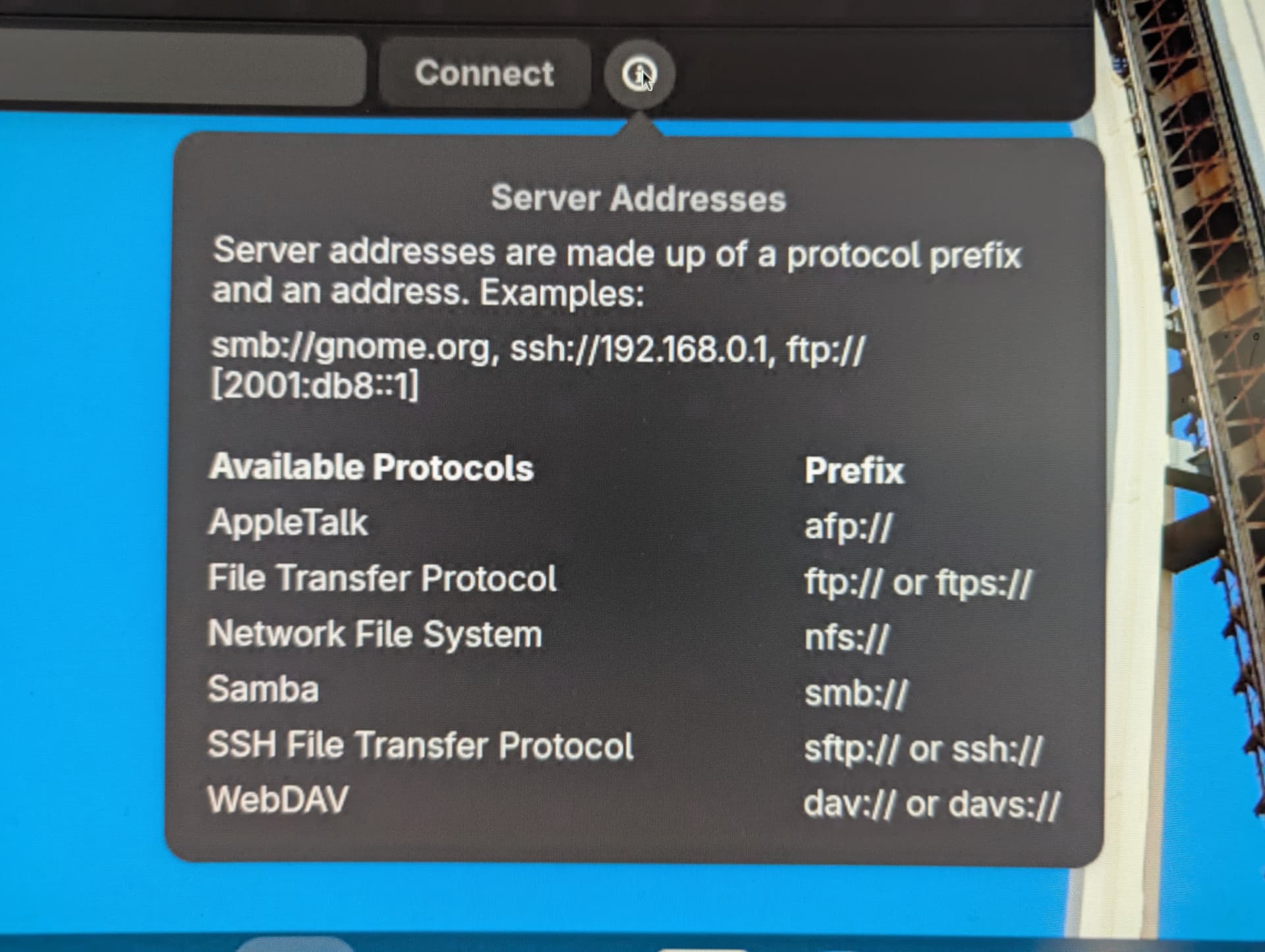 Yeah, thanks. I figured out eventually that gvfs-dnssd was missing. I installed it, and everything works fine. Interestingly, however, that package seems to have been removed recently (and surreptitiously) from blendOS. as I had no problem accessing WebDAV shares when I installed blendOS a week ago.