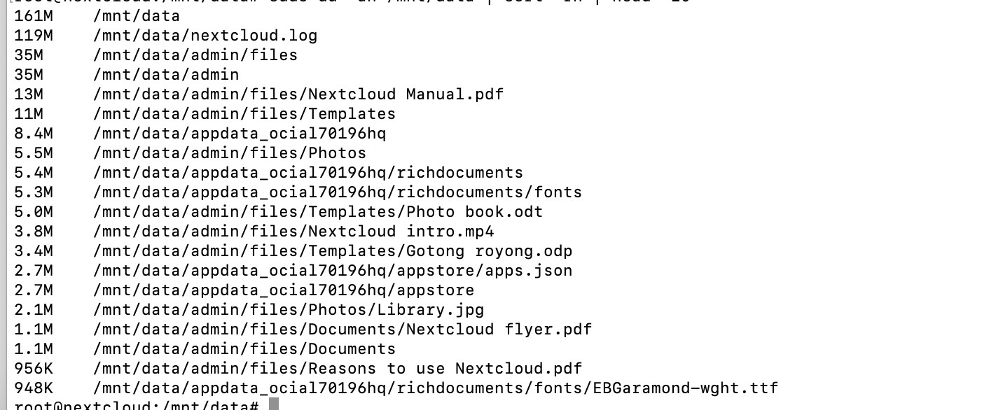 from the screenshot your Nextcloud is accessing /mnt/ncdata- not sure it is the same as your /mnt/datayou are looking at. size is similar likely the same but just to be sure. it is expected different tools show different space usage e.g. some commands ignore hidden files and maybe FS overhead, which seems to be the case for your df -h - total size of 16T, 161MB and 1% usage don’t really match 15T free.