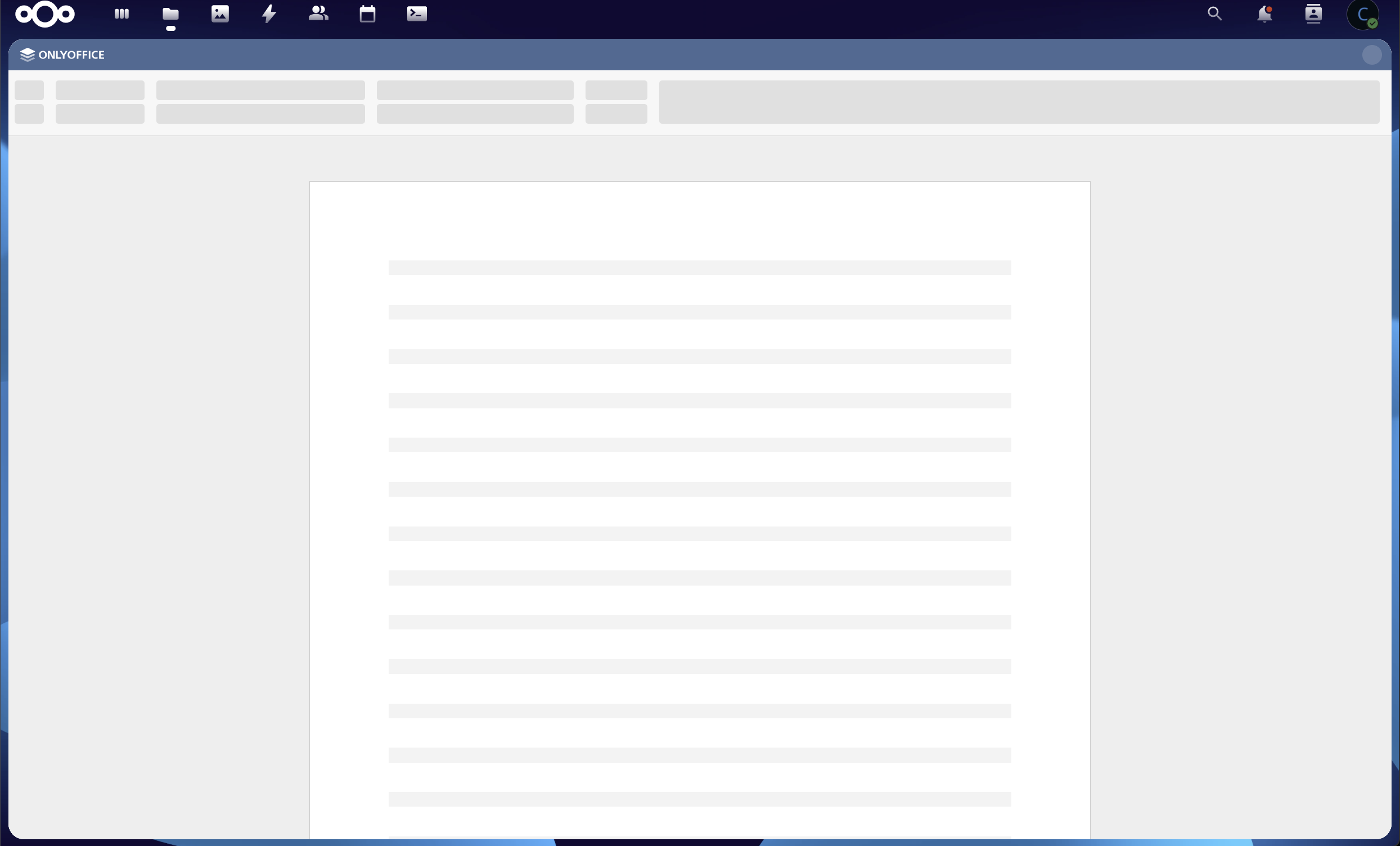 - Sobald ich in der Nextcloud über den Browser (und ich habe mehrere probiert) eine Office Datei öffne, starte auch OnlyOffice, allerdings nur mit einem weissen Bild.
