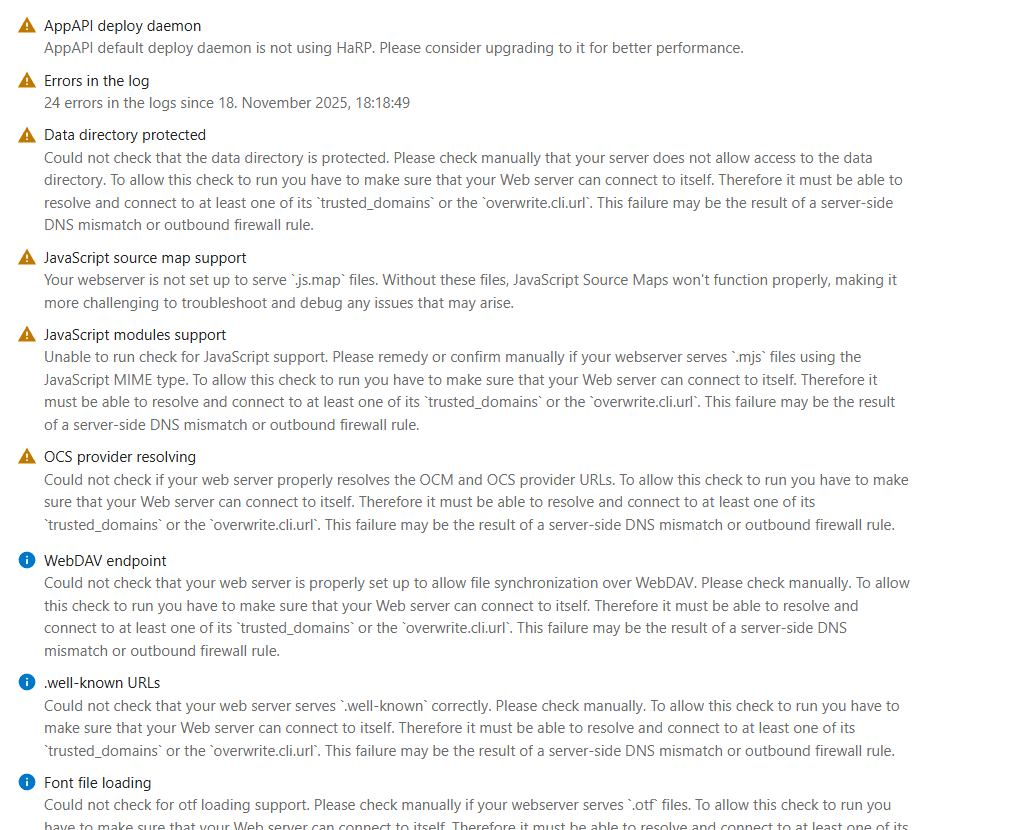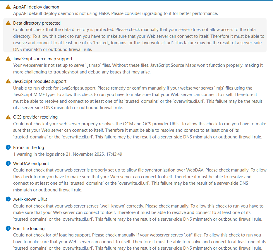 Anyway i have a few informational and warning messages that all tell me that they couldn’t check if they are configured or similar.