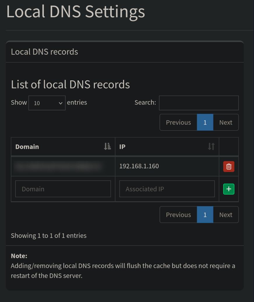 then in the local DNS settings of pihole you will add you desec domain name ( more on that in a bit) and the IP address of you Debian server that pihole is running on like so.