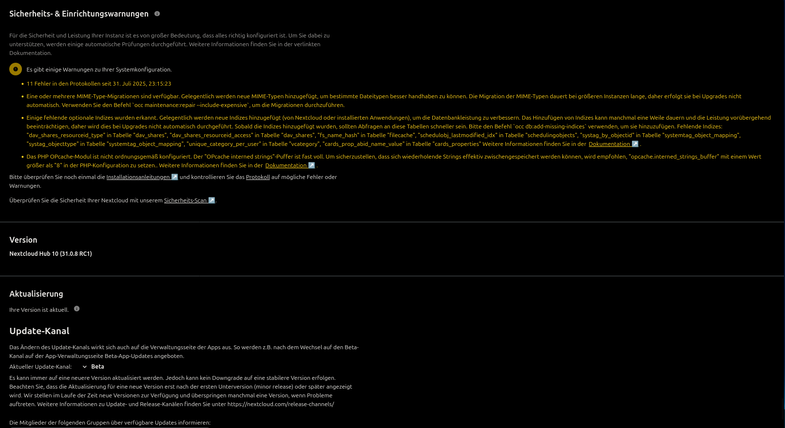 Bin jetzt auf Version Nextcloud Hub 10 31.0.7.