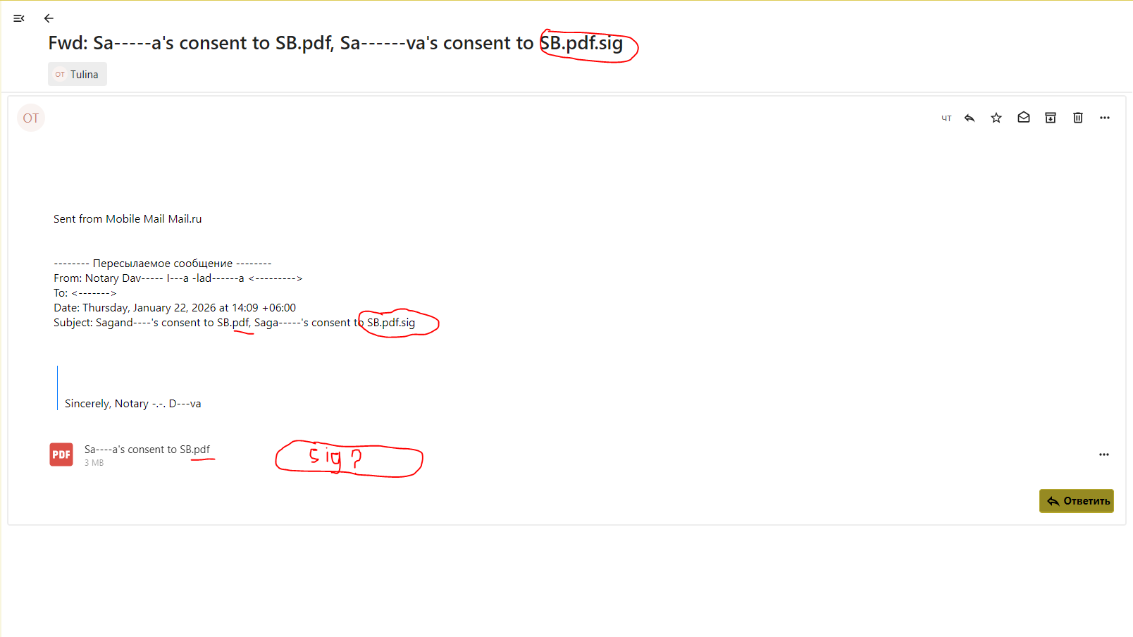 Nextcloud Mail does not display .sig attachments in emails, which is a problem because digital signatures should be available for download along with pdf.
