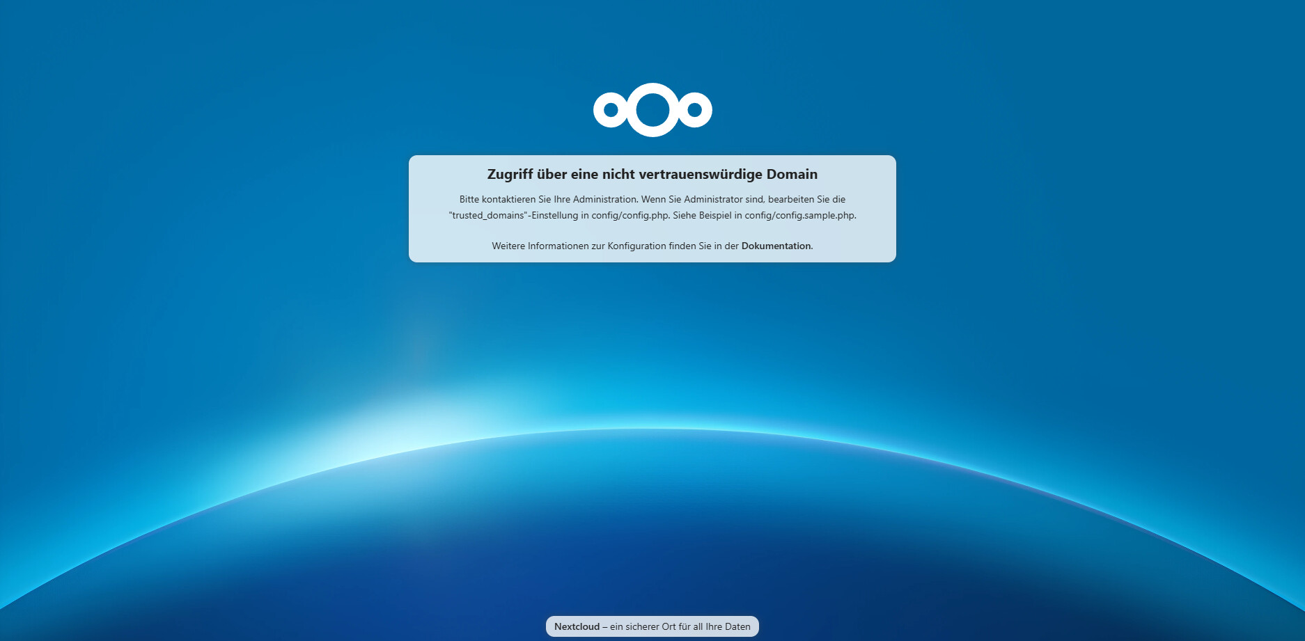 Ich kann die Cloud ganz normal anpingen und wenn ich die IP-Adresse ändere, über die ich zugreife bekomme ich folgenden Screen