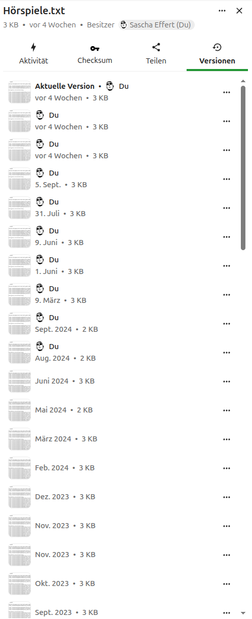 The file is existing since many years and updated often, so I expected at least about a version per month as described in Version control — Nextcloud latest User Manual latest documentation . For other files this seems to work: