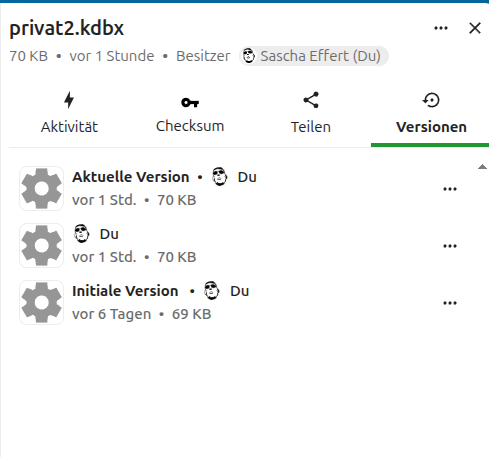 I use my nextcloud to store my keepassX Database. A week ago it got corrupted and I needed to jump back to an older version, but in Nextcloud under Versions there was no previous version, so I had to use my backup to get a working copy. Also thereafter it kept only very few versions: