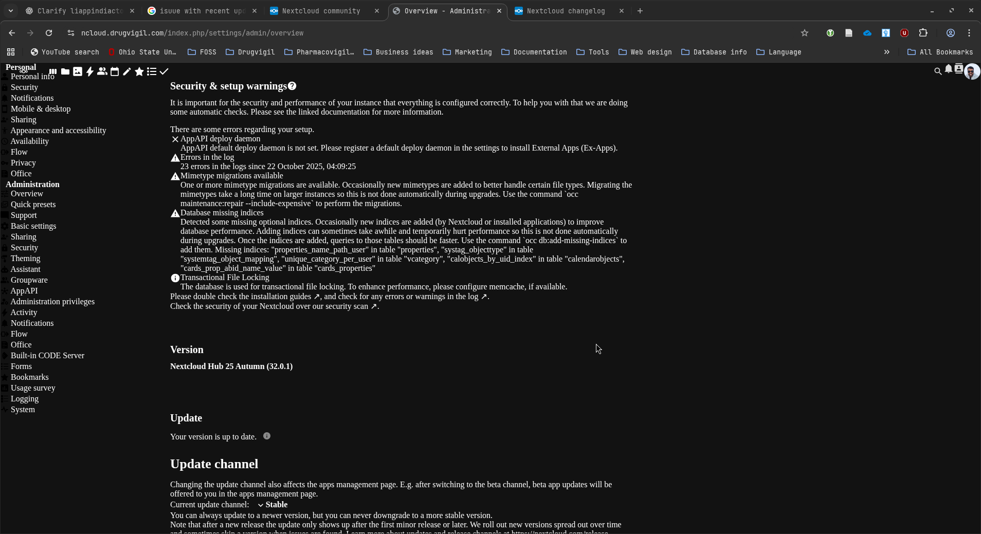 The missing indices in the database can improve the speed, also the transactional file locking. Just use the links provided in the warning messages.