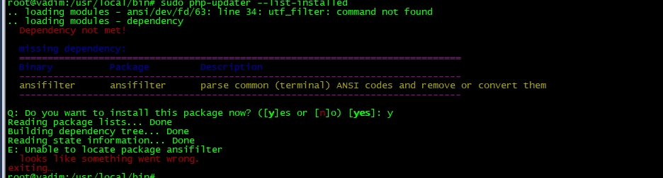 Itās a new dependency on the package ansifilter , which is normally available in the apt sources of Debian and Ubuntu: