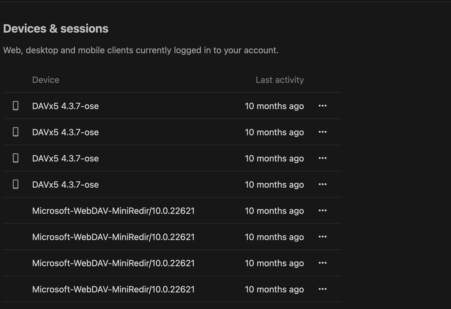 I am having hundreds of sessions in my Security settings; I want to delete them all and re-add them all manually. Reason for that is that there are quite a few computers I used this Nextcloud account on and now I added 2FA so I want to completely purge my session list and add them all again manually.