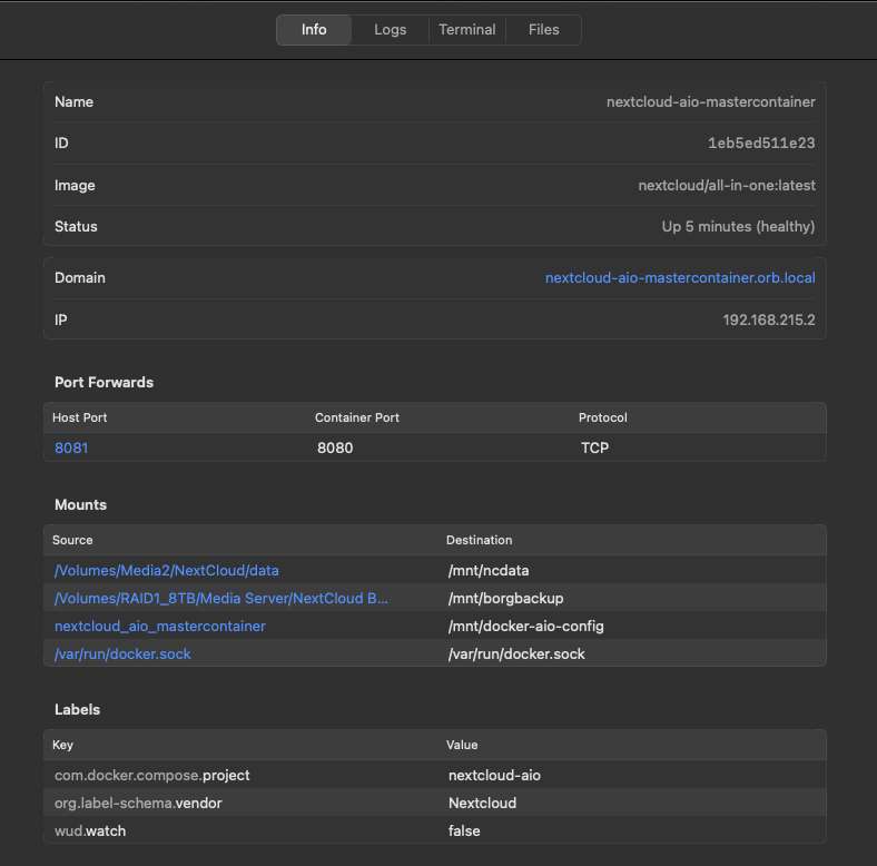 -v “/Volumes/Media2/NextCloud/data”:/mnt/ncdata \