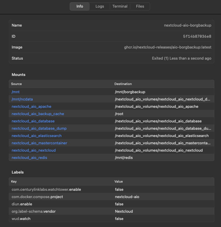 -v “/Volumes/RAID1_8TB/Media Server/NextCloud Backup/Docker Backup”:/mnt/borgbackup \