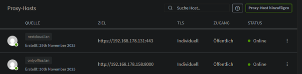- NPMplus configured to portforward nextcloud.lan and onlyoffice.lan to destination