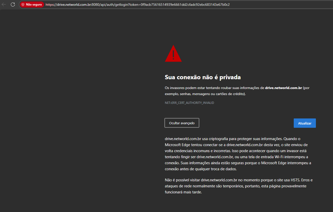 “You can’t visit drive.networld.com.br right now because the site uses HSTS. Network errors and attacks are usually temporary. This page will likely work later.”