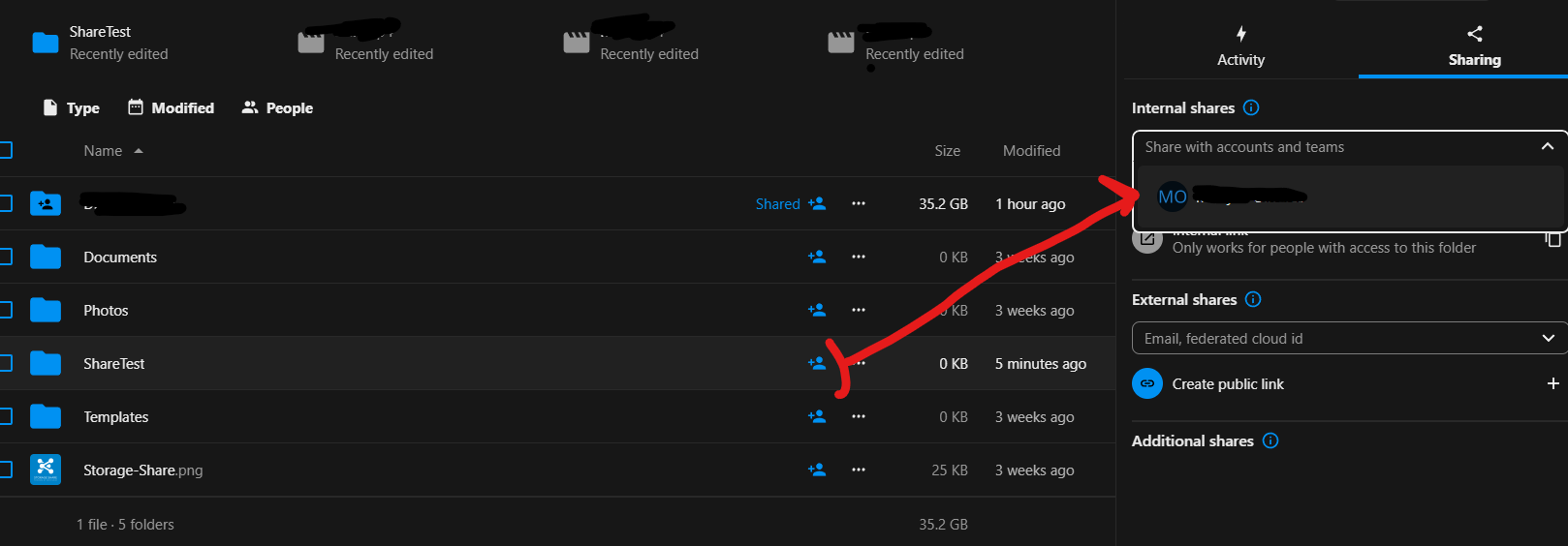 Select the dropdown next to Internal Shares