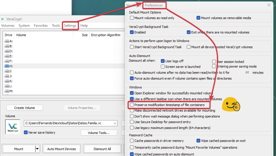 Imagine the cold sweat on my head when I realised I lost month worth of document changes since the standard settings didn’t work for synching veracrypt containers.