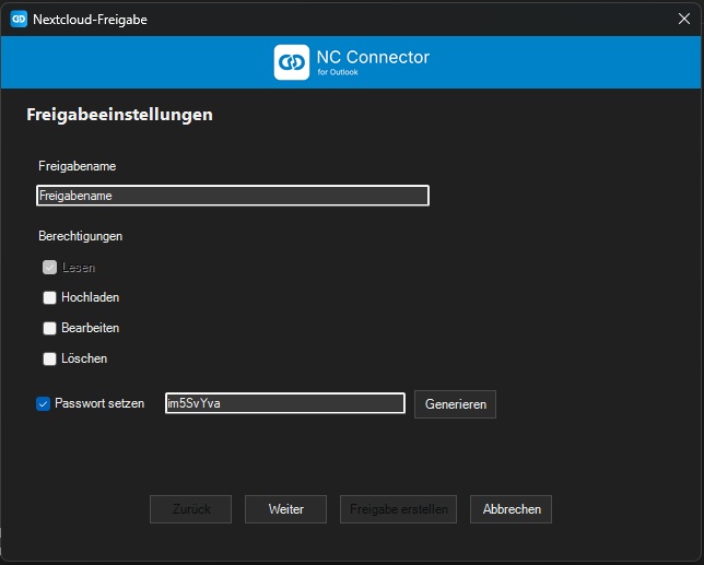 - Login Flow V2 (App-Passwort wird automatisch angelegt) und zentrale Optionen (Basis-URL, Debug-Modus, Freigabe-Pfade, Defaultwerte fuer Freigabe/Talk).