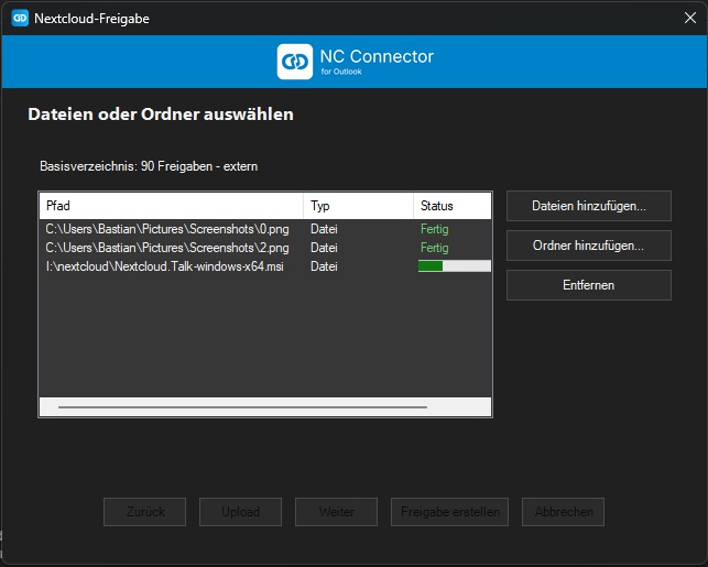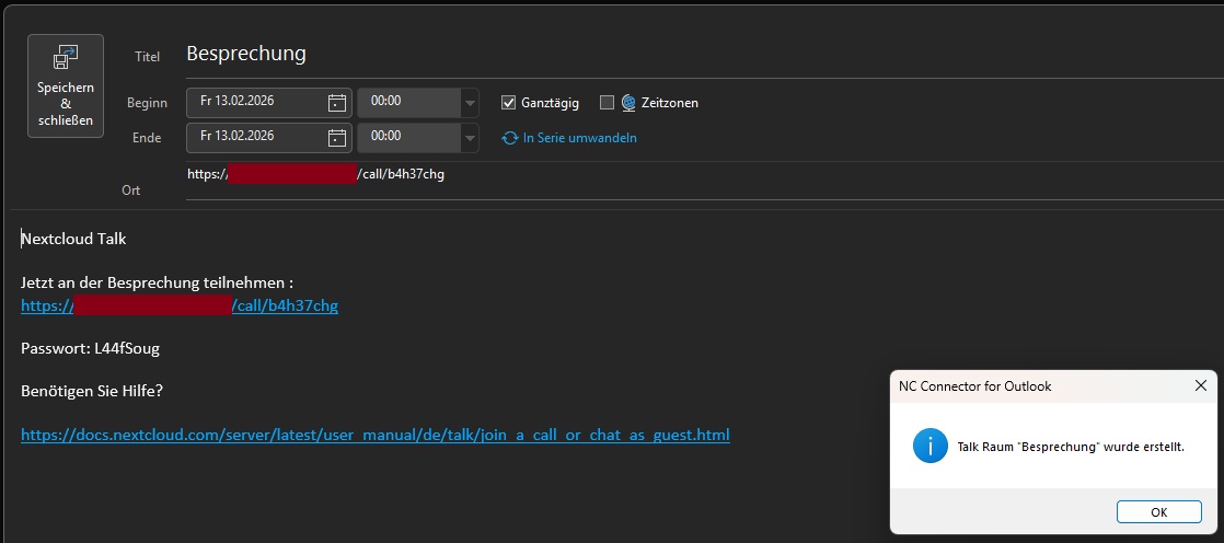 NC Connector for Outlook verbindet Outlook nahtlos mit Ihrer Nextcloud. Das Add-in automatisiert Talk-Raeume fuer Termine, stellt einen lokalen Free/Busy-Proxy bereit und liefert einen leistungsfaehigen Filelink-Assistenten fuer E-Mails. Ziel ist ein professioneller Workflow vom Kalender bis zur Dateiablage – ohne Medienbruch und mit klarer Administrierbarkeit.